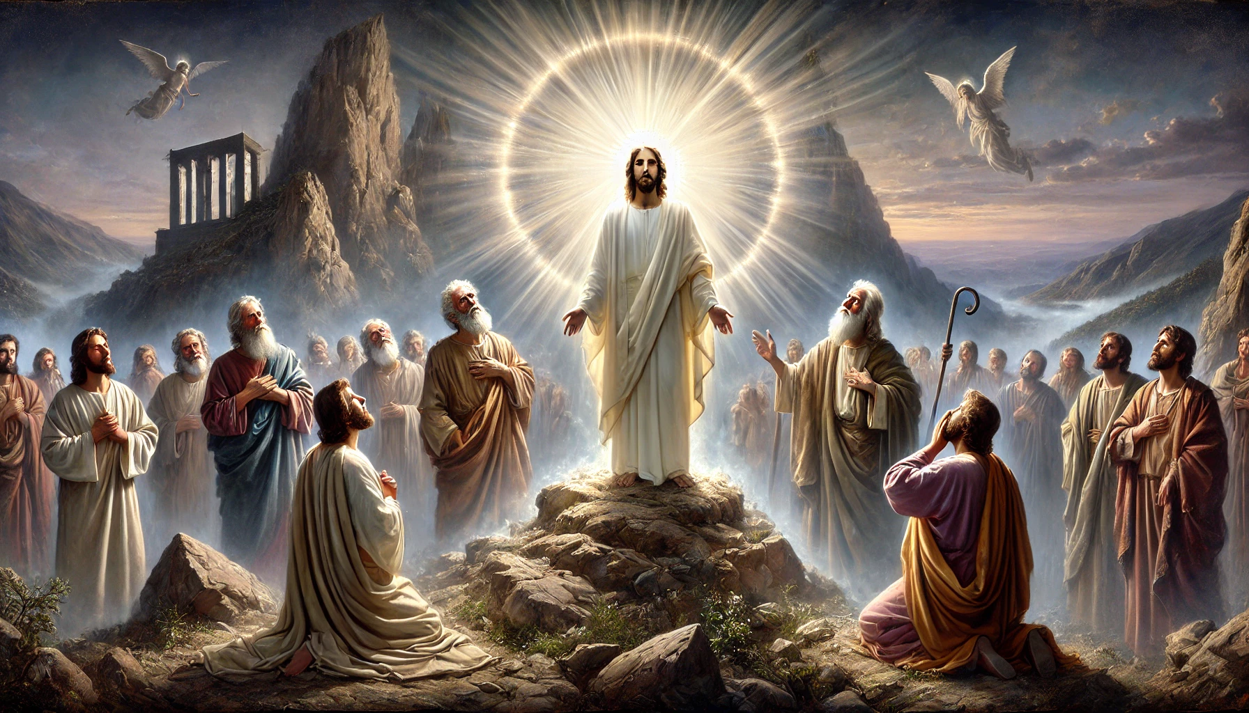 După leșinul apostolilor, un fapt interesant remarcăm: cei doi (Moise și Ilie) dispar, Hristos rămâne singur, solemn și monumental, în fața lor. Într-o manieră vizuală, varianta veterotestamentară a Legii și a Profeților apune, în vreme ce Hristos domnește în veci. Avem aici mesianitatea divină a lui Hristos, unică și strălucitoare cum nu s-a mai văzut.