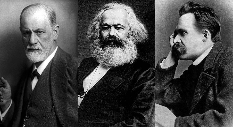 Sigmund Freud, Friedrich Nietzsche, și Karl Marx au fost figuri marcante în deschiderea secolului al XX-lea, fiecare aducând contribuții semnificative la transformarea gândirii moderne. Operațiile lor intelectuale au fost profund influențate de o "hermeneutică a suspiciunii", un termen introdus de Paul Ricoeur, care descrie un stil modern distinct de interpretare, care evită sensurile evidente sau de la sine înțeles pentru a extrage adevăruri mai puțin vizibile și mai puțin flatante. Această abordare a fost crucială în demascarea "minciunilor și iluziilor conștiinței", pe care Freud, Nietzsche și Marx le considerau drept arhitecți.